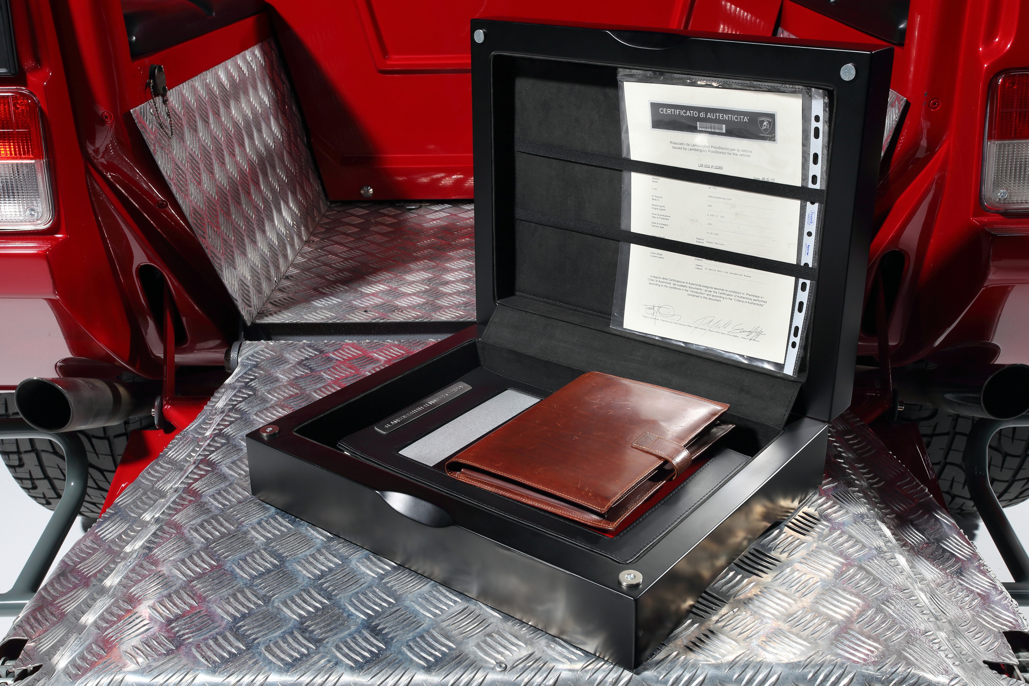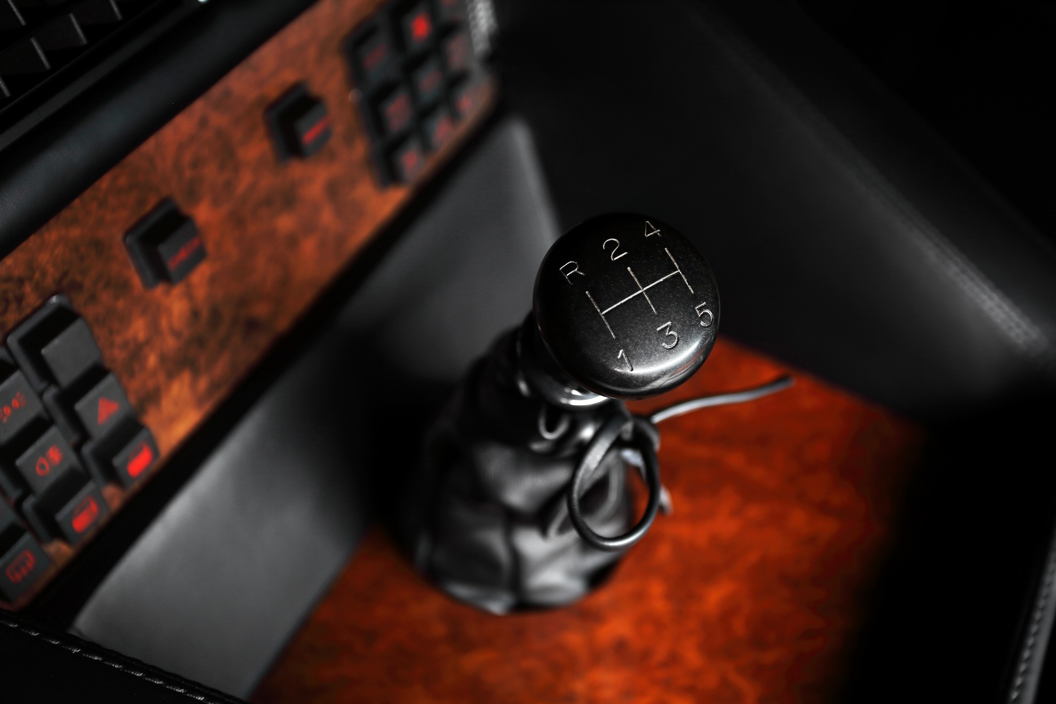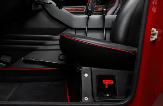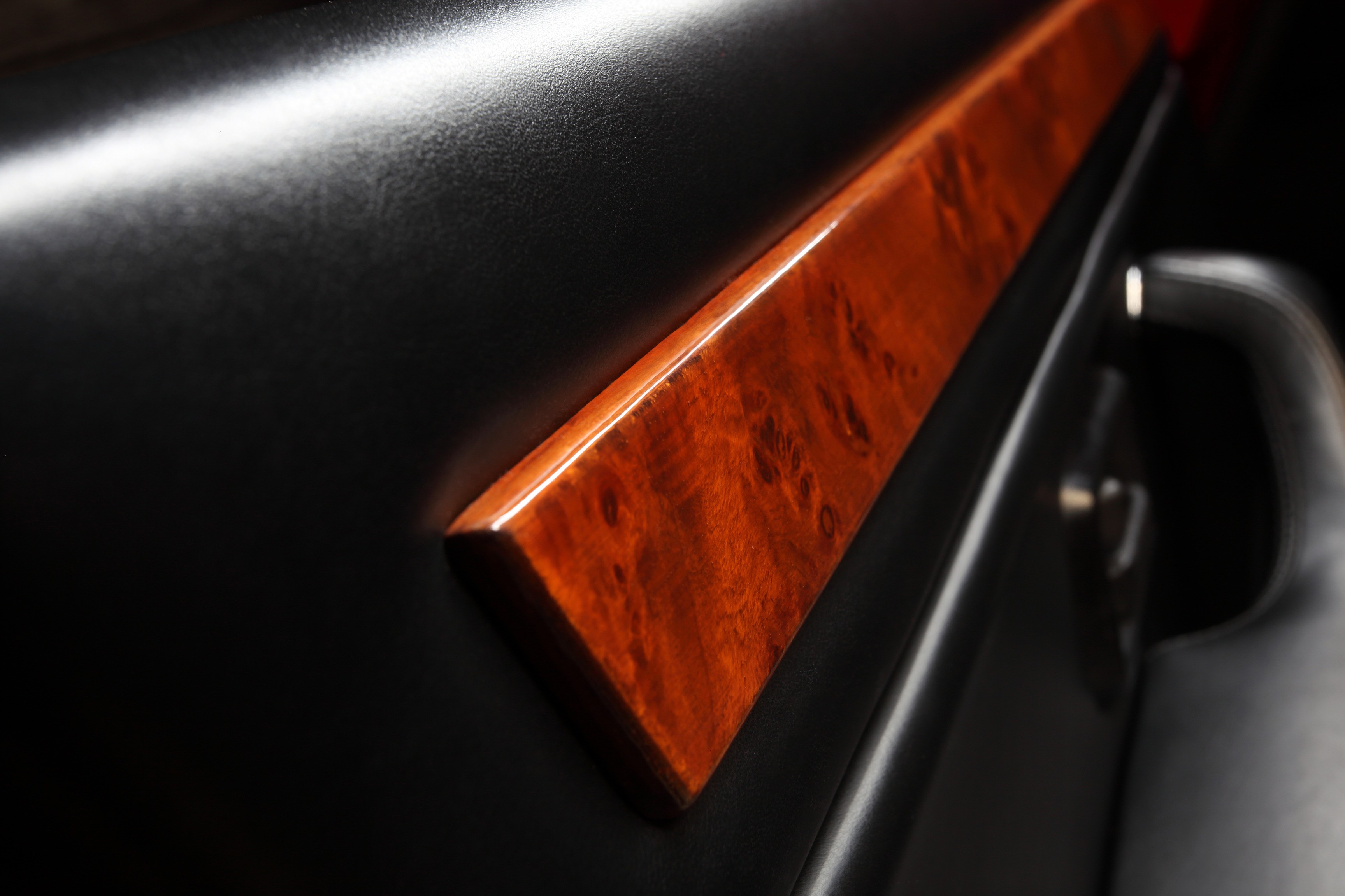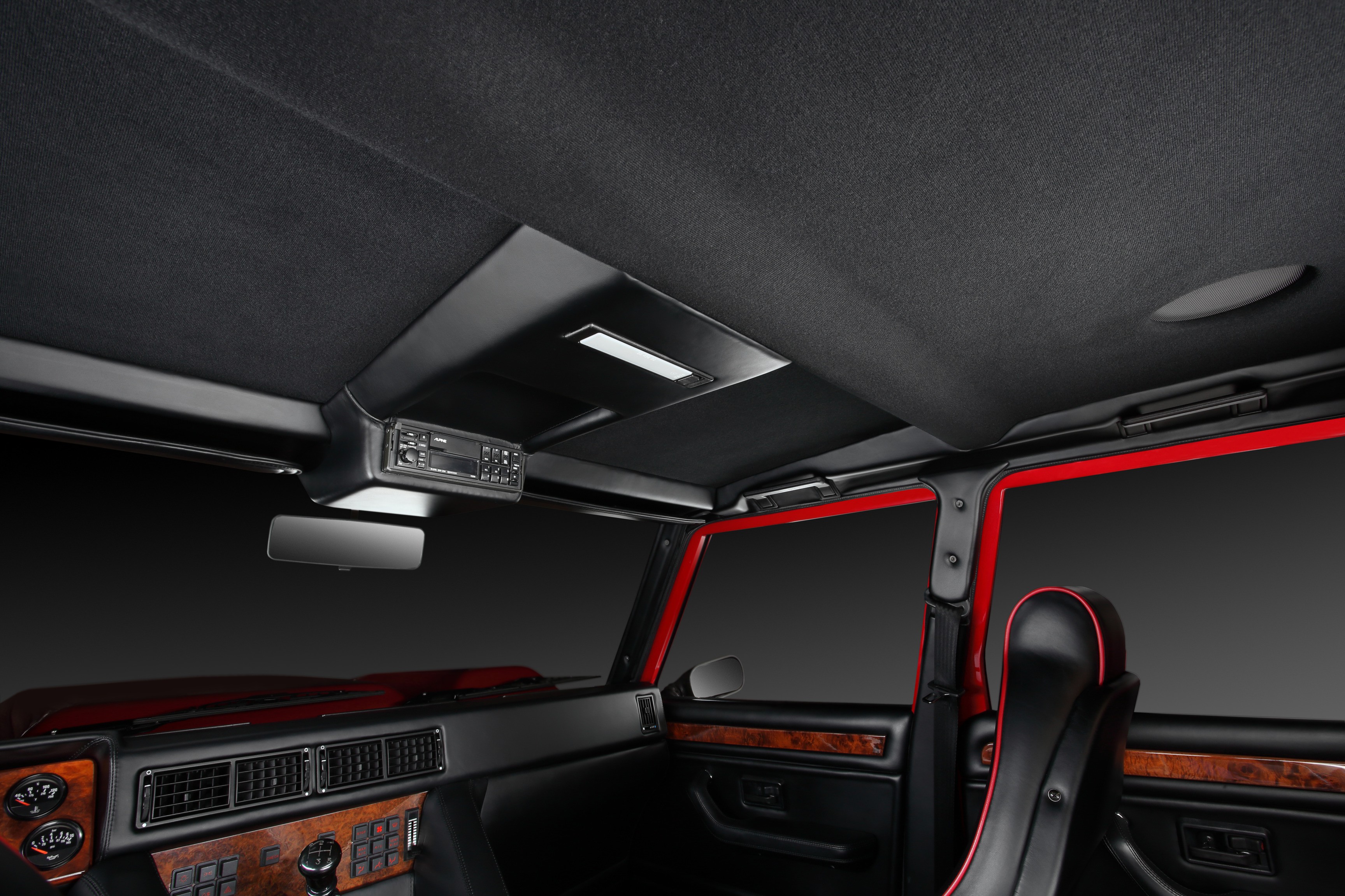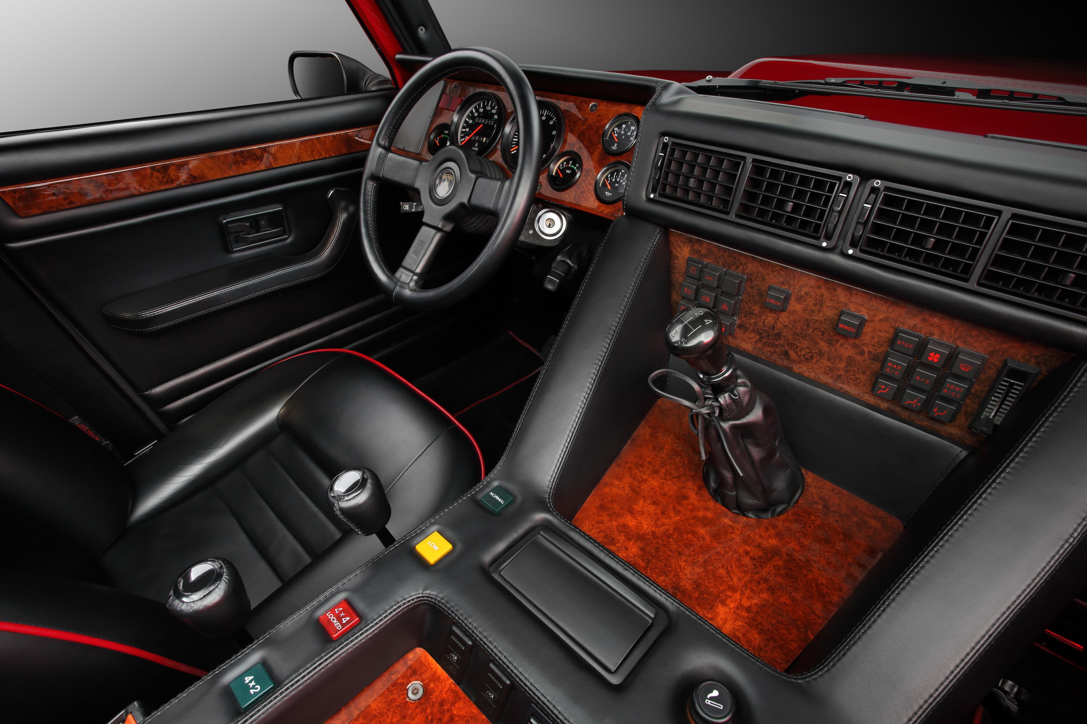 The interior, on the other hand, exuded luxury: full leather and wood trim, air conditioning, power windows, and a top-notch audio system in the ceiling. Luxury like in a Countach, but with four full-size seats.