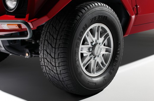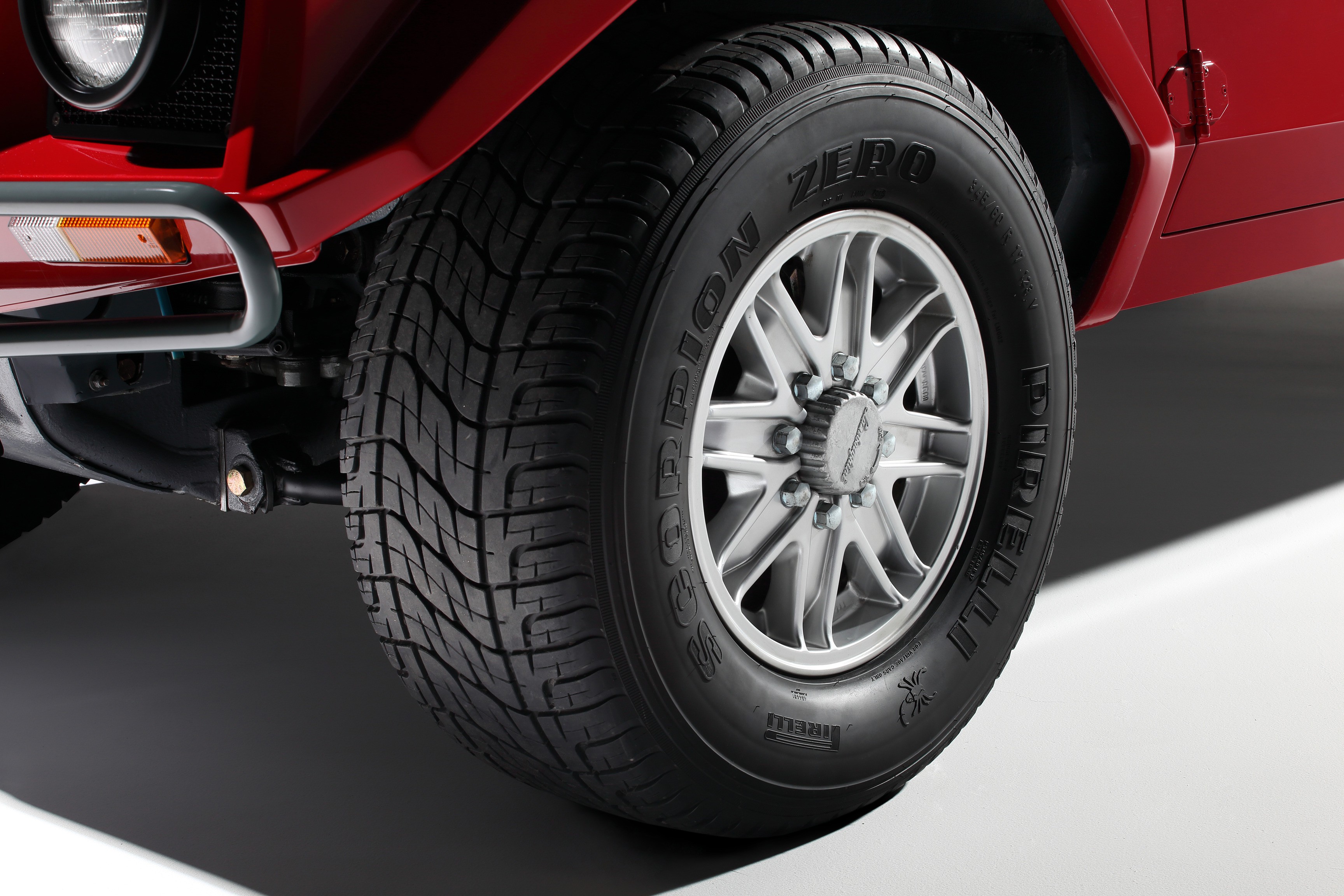 Tires: an exclusive Pirelli Scorpion model—325 mm wide! Two tread patterns (for asphalt/dirt and specifically for sand). Run-flat system—allows you to drive even with nearly flat tires, withstands desert heat and insane speeds.
